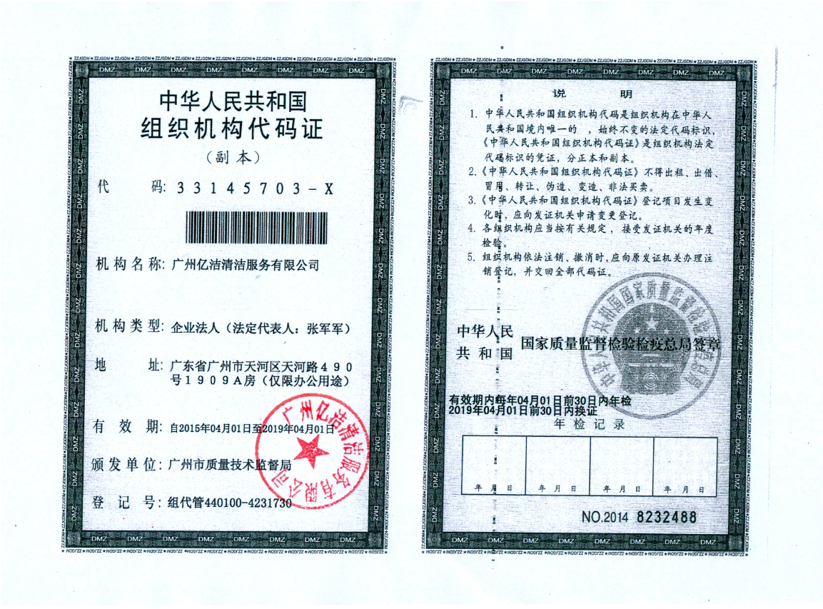 廣州億潔清潔服務有限公司是經廣州市工商行政管理局批準成立的(注冊資本:100萬元人民幣)。具有獨立法人資質。公司成立2015年,公司具備完善的管理體系和高素質管理隊伍,擁有特種技術人員33名,保潔服務人員上萬名,覆蓋廣州市,能及時調配并快速投入高效運行。我們的每個員工都經過公司的嚴格篩選,嚴格培訓,定期培訓后持證上崗以保證服務品質,保障客戶的權利,利益,形象等不受損失。 廣州億潔清潔公司是一家設備齊全,技術強大的綜合型清潔服務公司,為客戶提供完善服務尊定了堅定的基礎。 司于2010年全面推行了ISO9001質量管理體系認證和ISO14001國際環保體系認證。先后獲得廣州高層建筑外墻清洗維修作業【安全資質證書】、【廣州環衛企業等級證書C級資質】、廣州疾控中心頒發的【四害消殺服務資質證】、【空氣治理A級資質】、中國石材協會頒發的【石材資質B級資質】等。 廣州億潔清潔服務有限公司致力于打造專業、實惠、靠譜的保潔服務公司,把專業的事情交給專業的我們,您放心! 億潔清潔服務項目: 廣州保潔服務:新建樓宇、別墅、酒店、醫院、辦公樓、賓館、企事業單位廠房竣工后開荒及裝修后精細保潔.工程保潔服務。 廣州物業托管:為廣州市各大企事業單位、賓館、政府機關、小區物業、酒店及廠房提供專業化保潔、園林、設施維護等管理服務。 廣州高空作業:高空玻璃幕...[詳情]